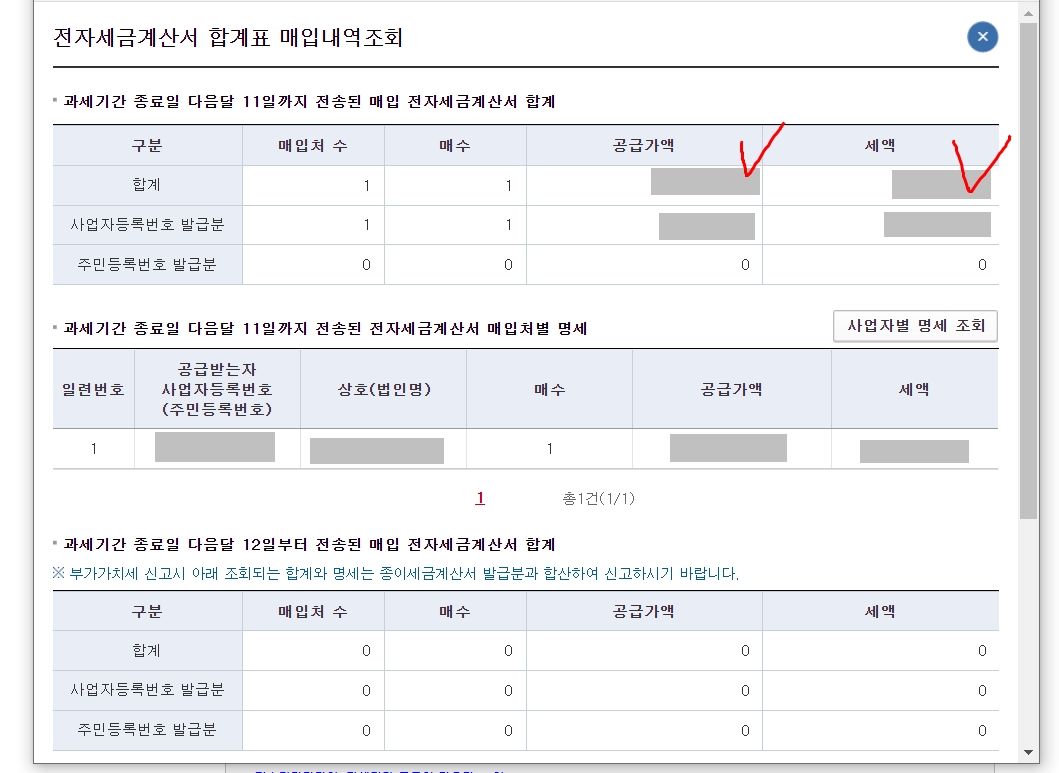 매입처별 세금계산서 합계표, 건물등 감가상각자산 취득명세서 체크
