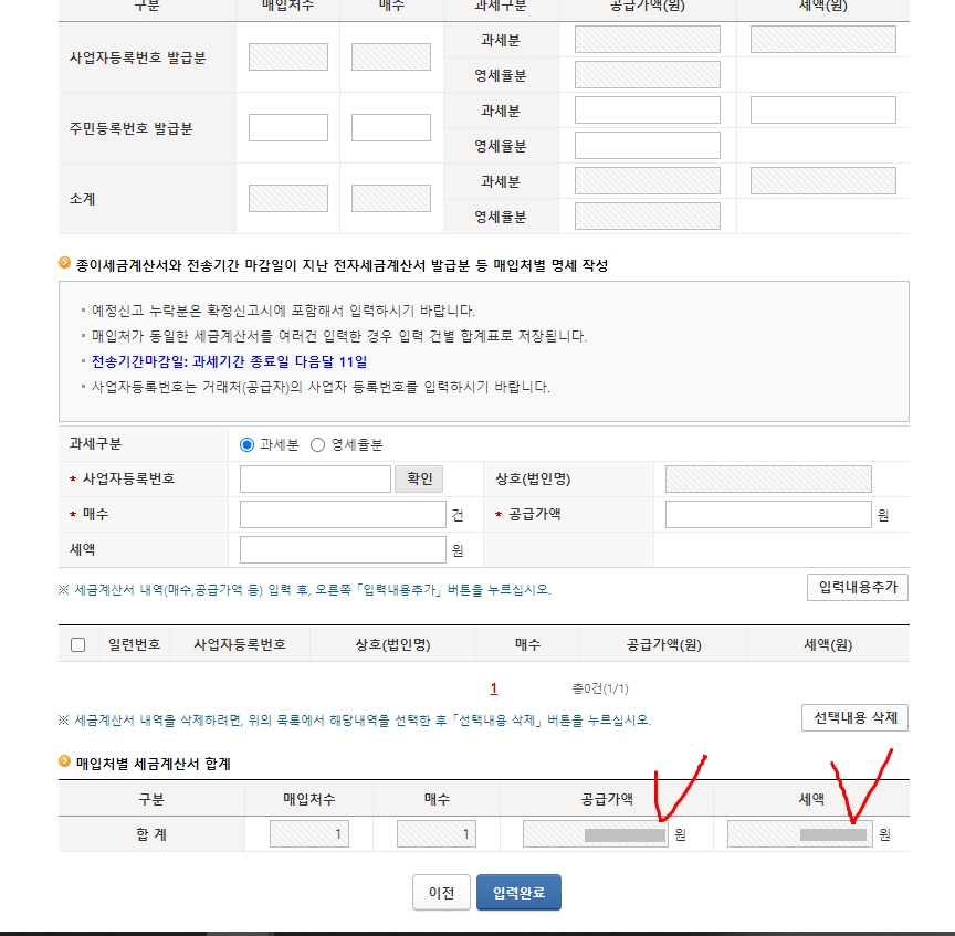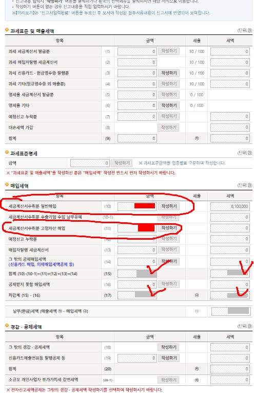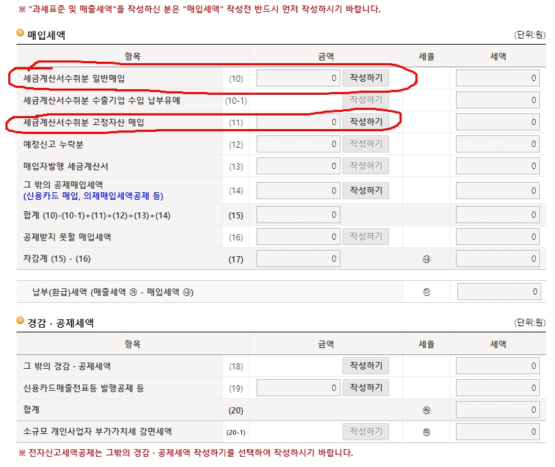 세금계산서수취분 고정자산 매입( 이부분 입력안하면 오류 뜹니다.)