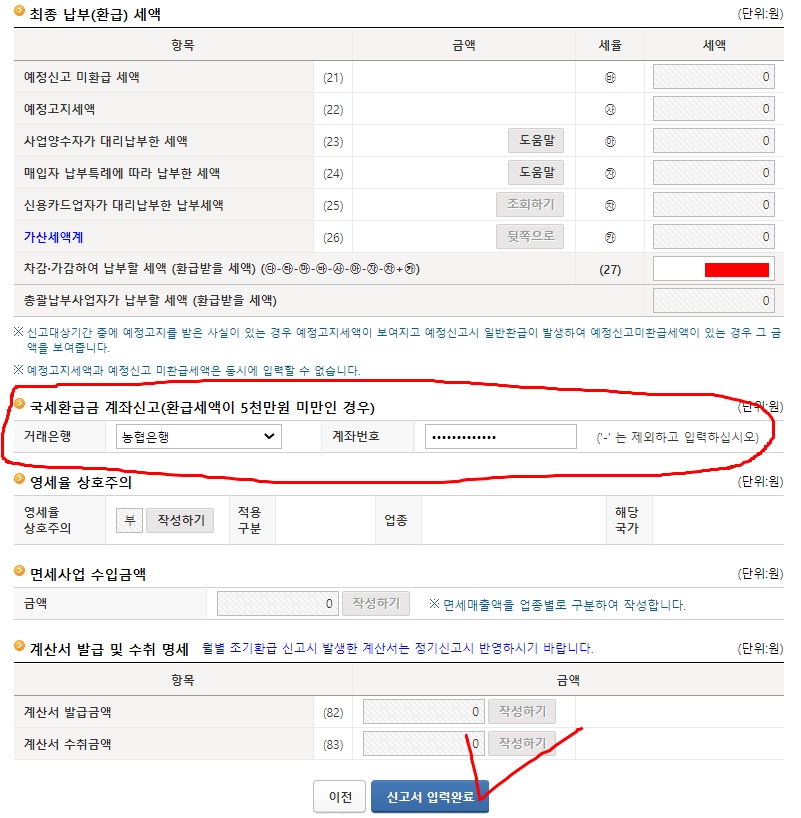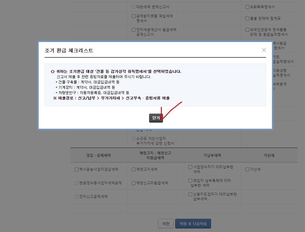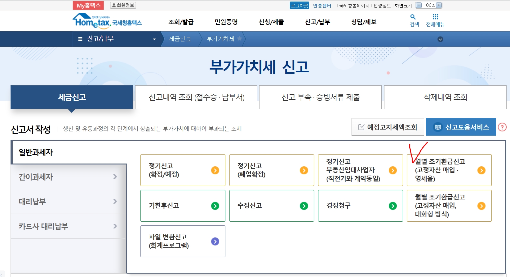 일반과세자 - 월별조기환급신고 (고정자산 매입 ·영세율) 클릭