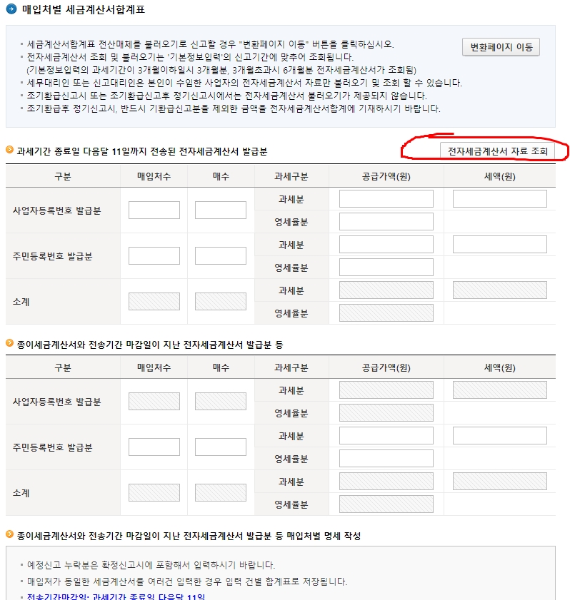 작성하기 누르면 아래 화면에서 전자세금계산서 자료조회를 누르면