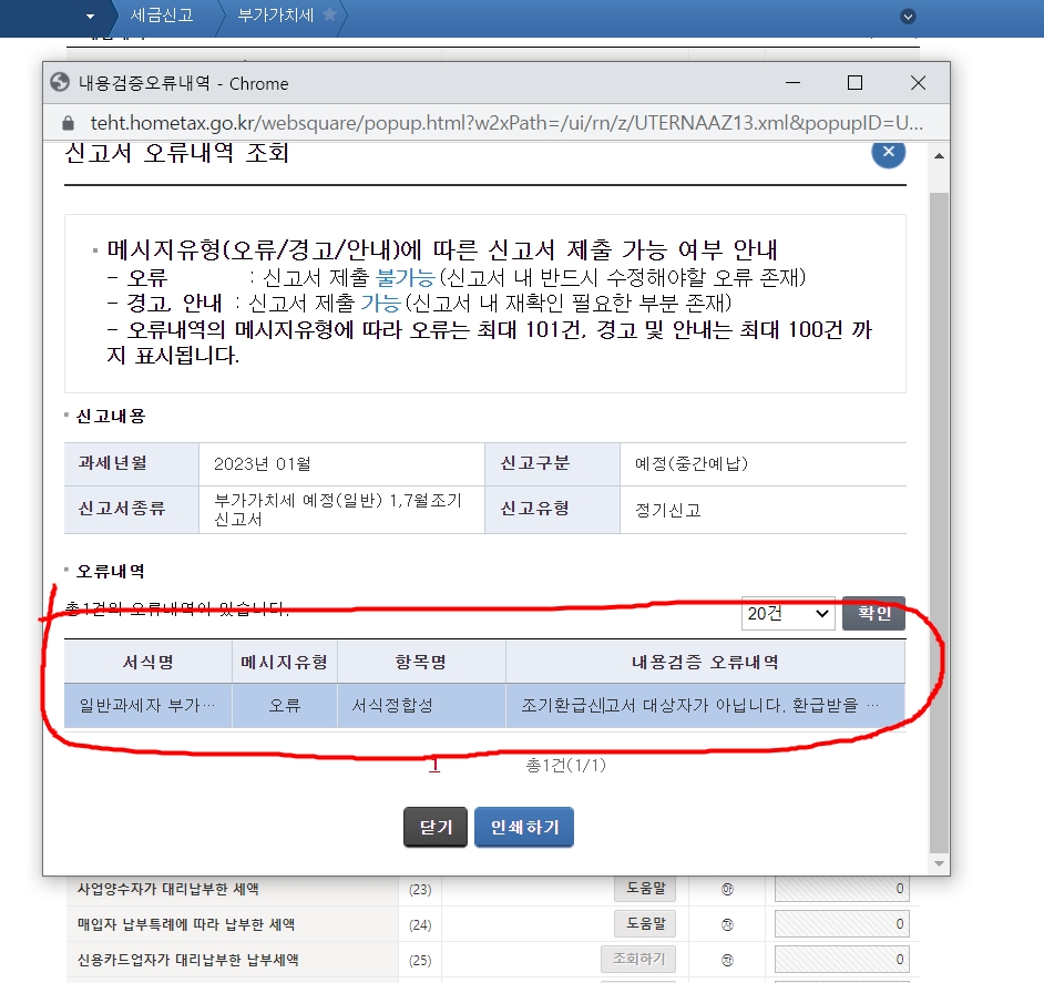 세금계산서수취분 고정자산 매입 부분을 누락하면 아래처럼 오류가 뜹니다.