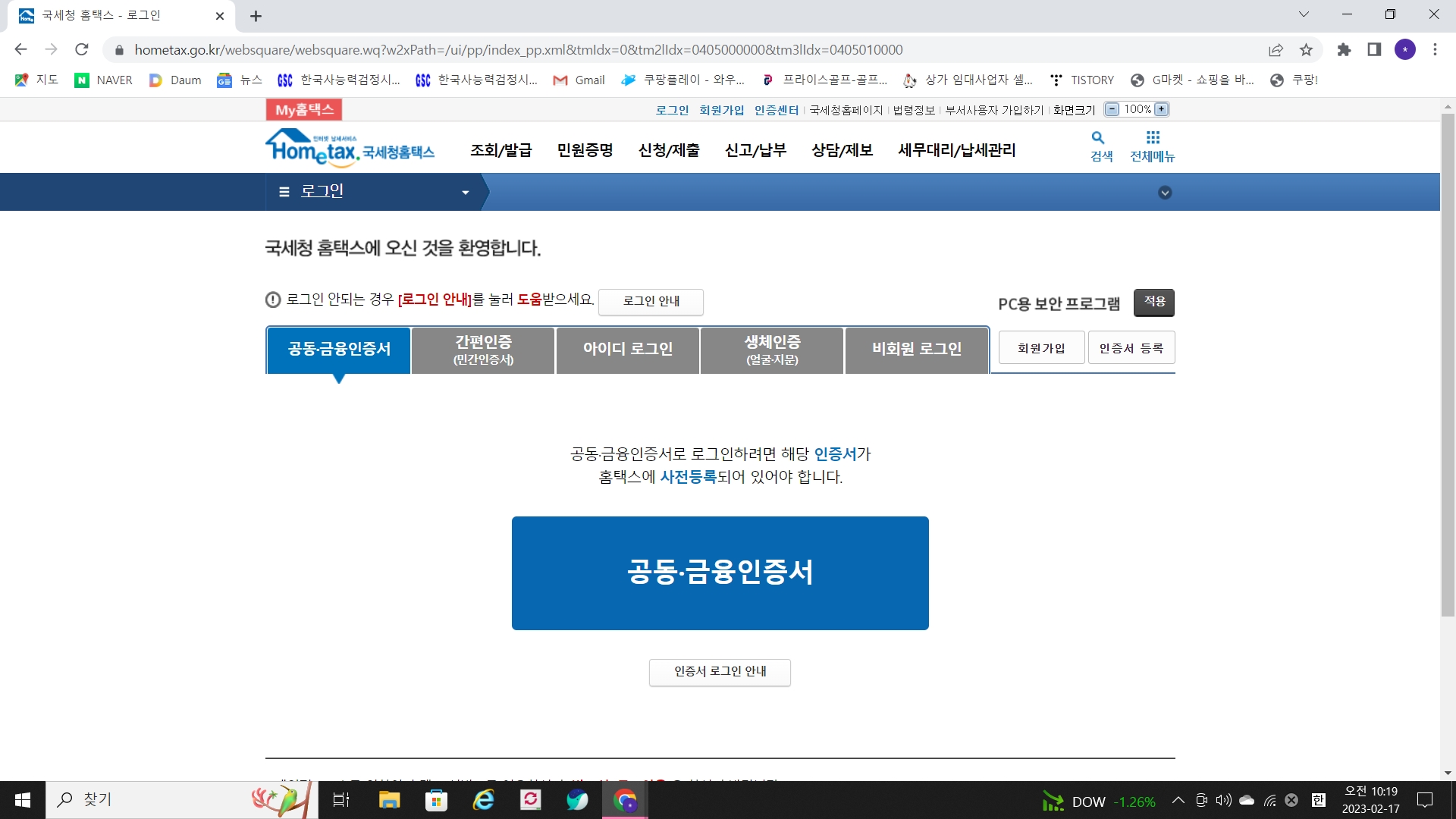 저는 세금계산서 발행을 위해 발급받은 인증서로 사업자로그인을 하였습니다.
