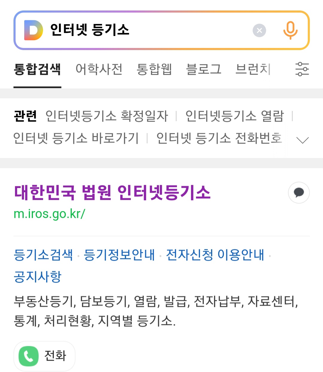 검색 사이트에서 인터넷 등기소 검색하여 접속