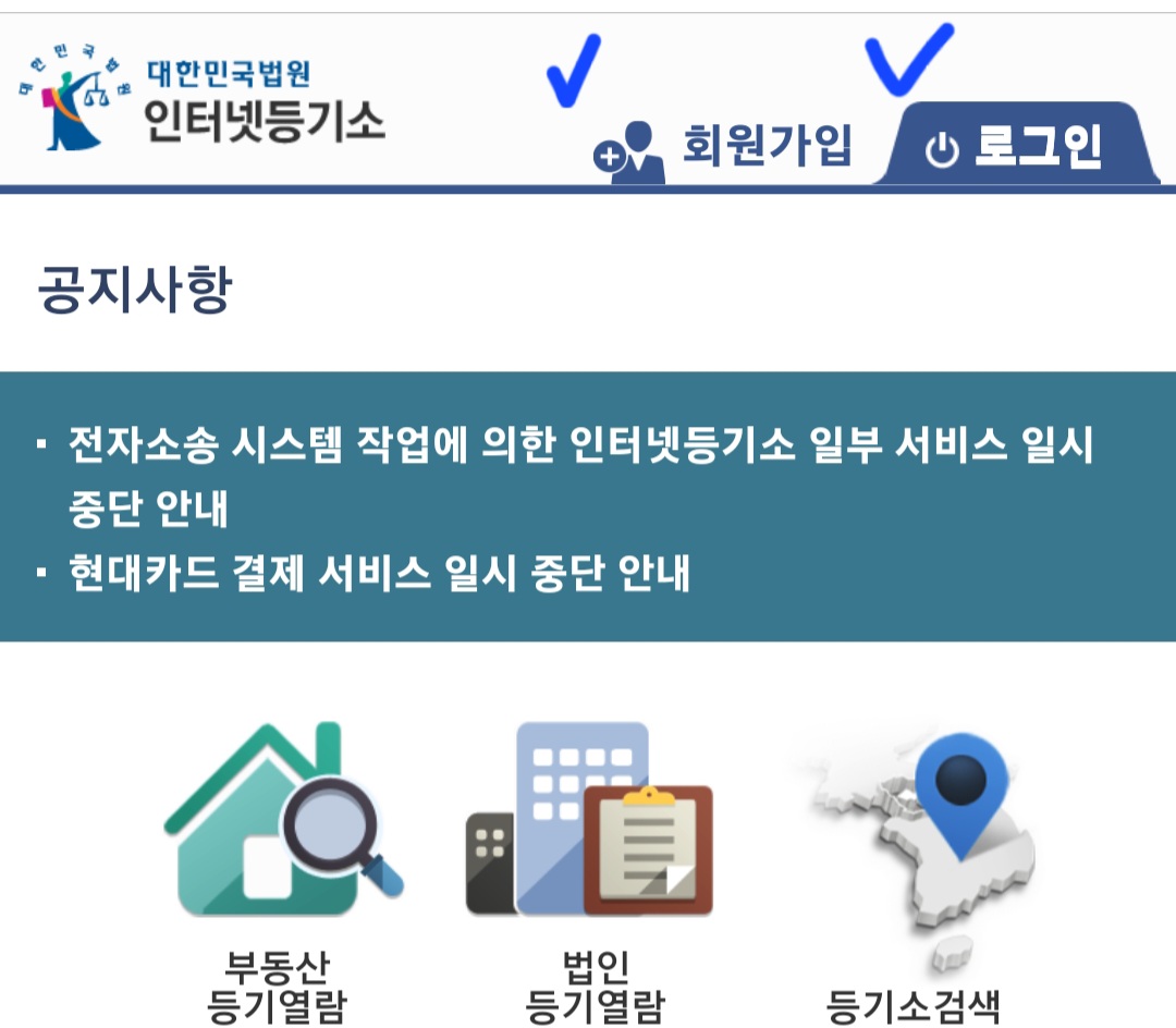 * 인터넷 등기소 앱을 설치해도 됩니다.(동일)